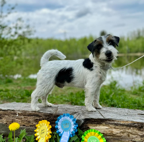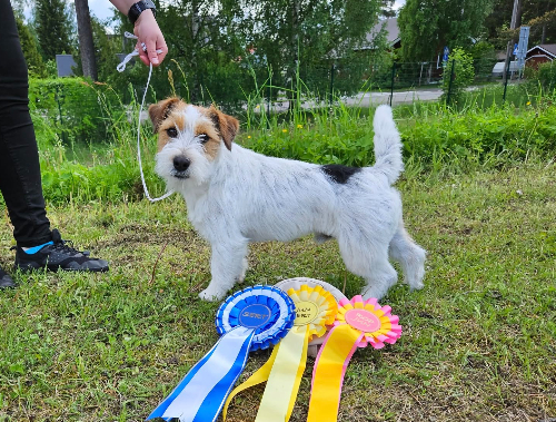 Otto on valkoinen mustin ja ruskein merkein, karkeakarvainen.